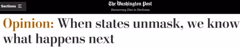 I den skrev forfatteren James Downie: "Videnskaben er klar: Som [Jake] Tapper bemærkede, fandt en ny CDC-undersøgelse udgivet i sidste uge, at antallet af sager og dødsfald "blev langsommere" inden for tre uger efter, at maskemandater blev pålagt, mens begrænsningerne blev lempet på spisning øger både tilfælde og dødsfald." Det "bremsede betydeligt", han refererede til, var faldet på 1 % i sager. Medierne formede frygten i amerikanerne. Sjældent har store medier kontekstualiseret dataene eller vist en faktisk balance mellem COVID-19 sundhed og folkesundhed.